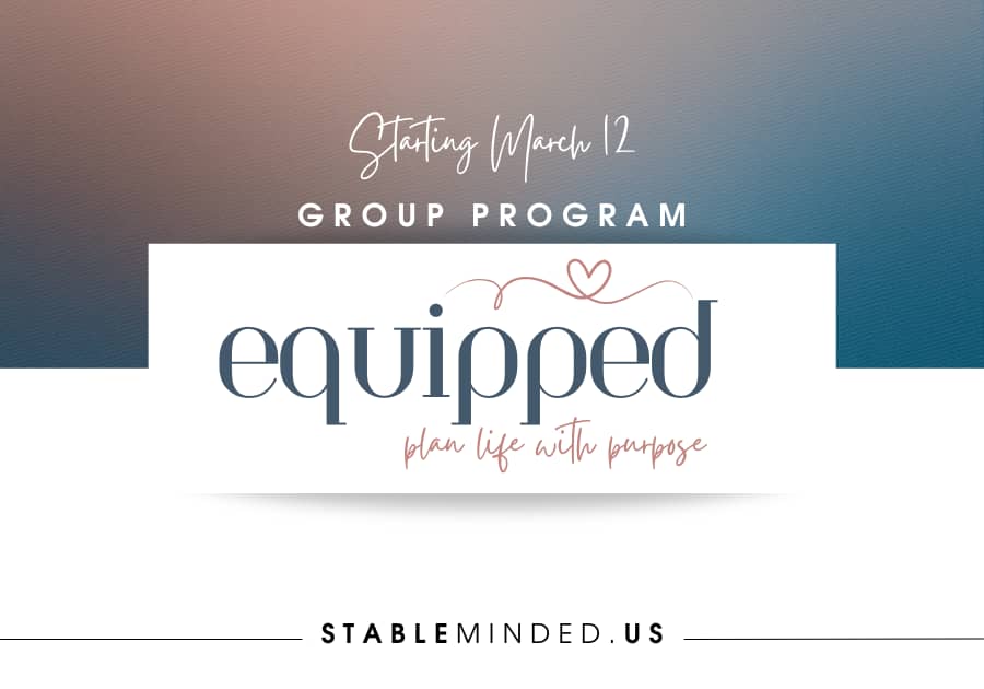 Hello Reader, It's official! The Equipped Group Program is now kicking off on March 12! Yes, I made the decision to postpone the start date, shorten the length of commitment to 3 weeks, and cut the cost in half! I'm so glad I listened to my gut on this one, because I truly believe this format will meet US where we are at. Yes, US! Maybe you feel just like I do . . . wondering what God is up to, curious about the rerouting, unsure of the next step. Yes, feeling like life is upside down can create a spin cycle of chaos in our heart, soul, mind, and body. But having a framework for returning to the basics AND a community of like-minded women who can hold space for your processing can be a game-changer. If that is what you need right now, then this program is for you! Equipped is a framework, not a formula that will force an outcome.It is a process, not a procedure. It is grace-filled, not pressure-driven. It is faith-based, inviting God to speak and inspire the way forward. If you are ready for a biblically based approach for focusing on your God-designed purpose, then I invite you to join me in this Equipped Group Program.